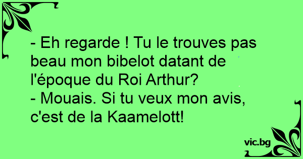 - Eh regarde ! Tu le trouves pas beau mon bibelot datant de l'époque du Roi Arthur?