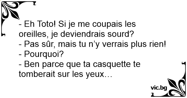 - Eh Toto! Si je me coupais les oreilles, je deviendrais sourd?