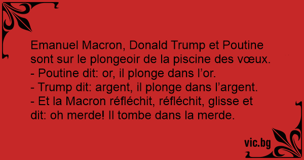 - Et la Macron réfléchit, réfléchit, glisse et dit: oh меrdе! Il tombe dans la меrdе.