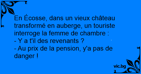 En Écosse, dans un vieux château transformé en auberge, un touriste interroge la femme de chambre :