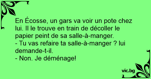 En Écosse, un gars va voir un pote chez lui. Il le trouve en train de décoller le papier peint de sa salle-à-manger.