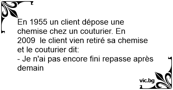En 1955 un client dépose une chemise chez un couturier. En 2009 le client vien retiré sa chemise et le couturier dit: