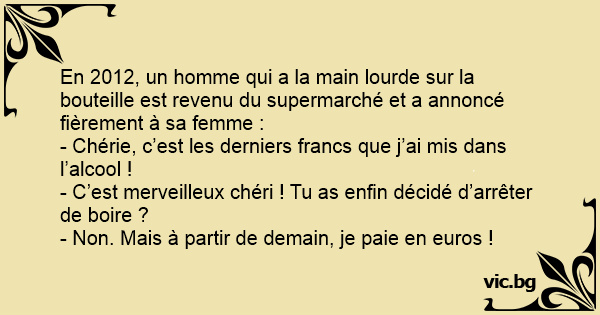 - Chérie, c’est les derniers francs que j’ai mis dans l’alcool !