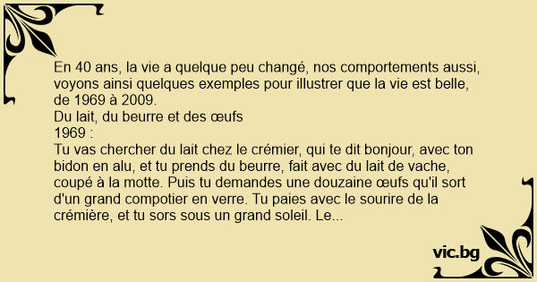 En 40 ans, la vie a quelque peu changé, nos comportements aussi, voyons ainsi quelques exemples pour illustrer que la vie est belle, de 1969 à 2009.