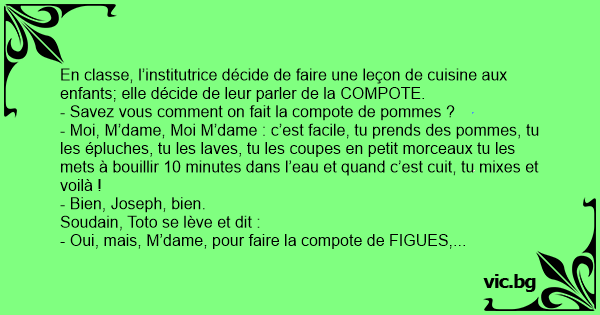 - Oui, mais, M’dame, pour faire la compote de FIGUES, c’est pas pareil…