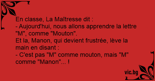 - C'est pas "M" comme mouton, mais "M" comme "Manon"... !
