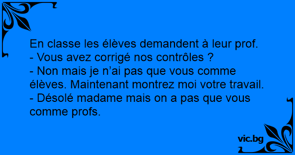 - Non mais je n’ai pas que vous comme élèves. Maintenant montrez moi votre travail.
