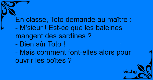 - M’sieur ! Est-ce que les baleines mangent des sardines ?