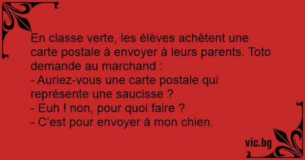 En classe verte, les élèves achètent une carte postale à envoyer à leurs parents. Toto demande au marchand :