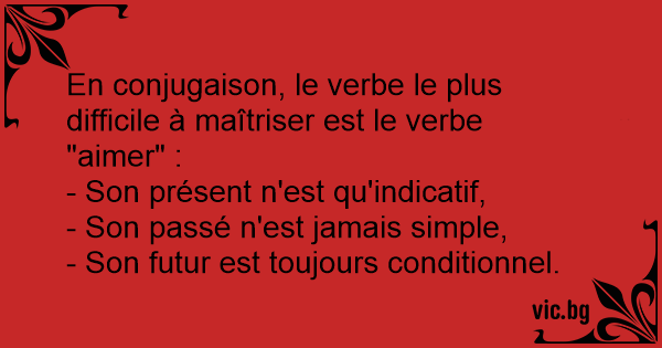 En conjugaison, le verbe le plus difficile à maîtriser est le verbe "aimer" :
