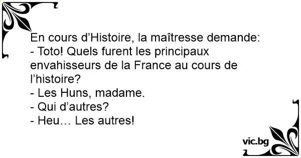 En cours d’Histoire, la maîtresse demande: