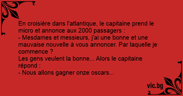 En croisière dans l'atlantique, le capitaine prend le micro et annonce aux 2000 passagers :