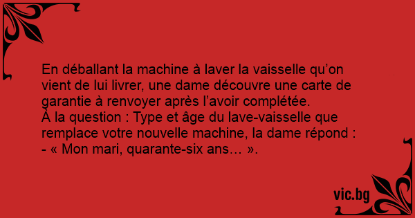 À la question : Type et âge du lave-vaisselle que remplace votre nouvelle machine, la dame répond :