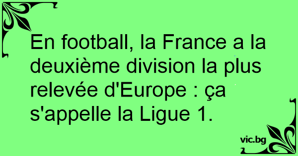 En football, la France a la deuxième division la plus relevée d'Europe : ça s'appelle la Ligue 1.