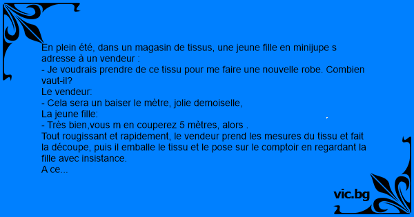 En plein été, dans un magasin de tissus, une jeune fille en minijupe s adresse à un vendeur :