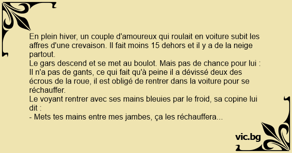 Le voyant rentrer avec ses mains bleuies par le froid, sa copine lui dit :