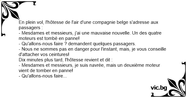 En plein vol, l'hôtesse de l'air d'une compagnie belge s'adresse aux passagers :