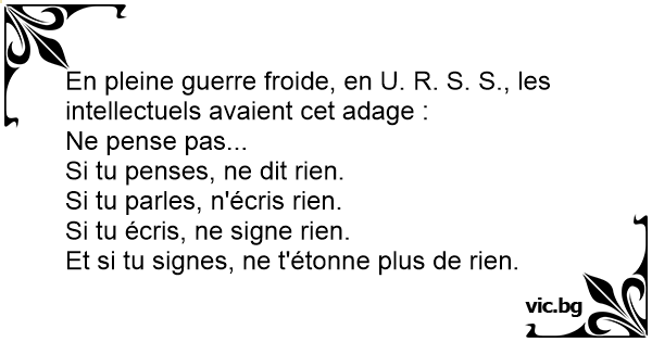 En pleine guerre froide, en U. R. S. S., les intellectuels avaient cet adage :
