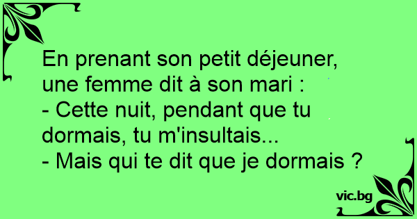 - Cette nuit, pendant que tu dormais, tu m'insultais...
