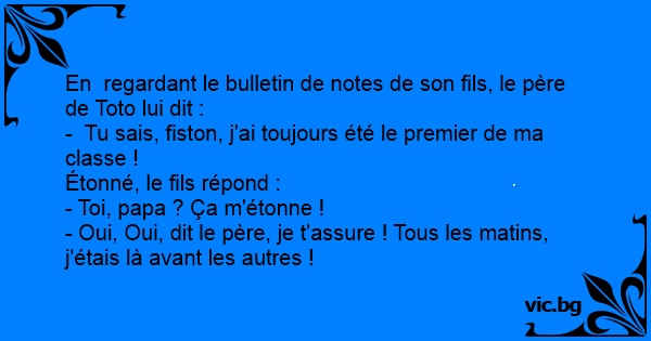 En  regardant le bulletin de notes de son fils, le père de Toto lui dit :