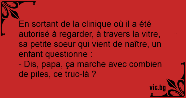 En sortant de la clinique où il a été autorisé à regarder, à travers la vitre, sa petite soeur qui vient de naître, un enfant questionne :