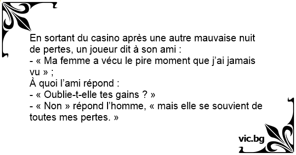 En sortant du casino après une autre mauvaise nuit de pertes, un joueur dit à son ami :
