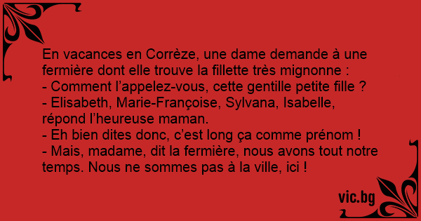 En vacances en Corrèze, une dame demande à une fermière dont elle trouve la fillette très mignonne :