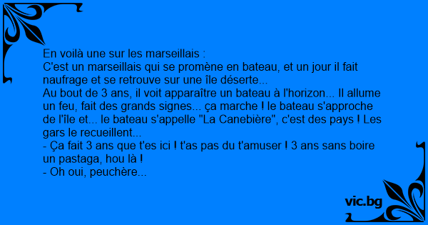 C'est un marseillais qui se promène en bateau, et un jour il fait naufrage et se retrouve sur une île déserte...