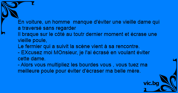 - EXcusez moi MOnsieur, je l'ai écrasé en voulant éviter cette dame.