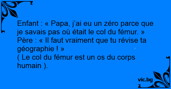 Enfant : « Papa, j’ai eu un zéro parce que je savais pas où était le col du fémur. »