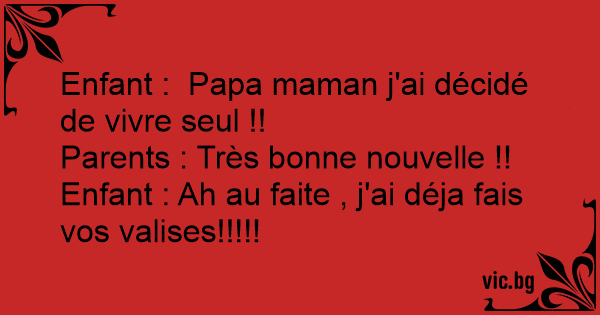 Enfant : Papa maman j'ai décidé de vivre seul !!