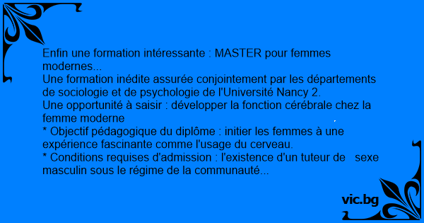 Enfin une formation intéressante : MASTER pour femmes modernes...