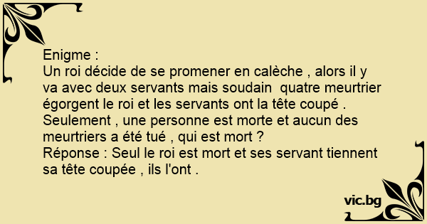 Enigme : Un roi décide de...