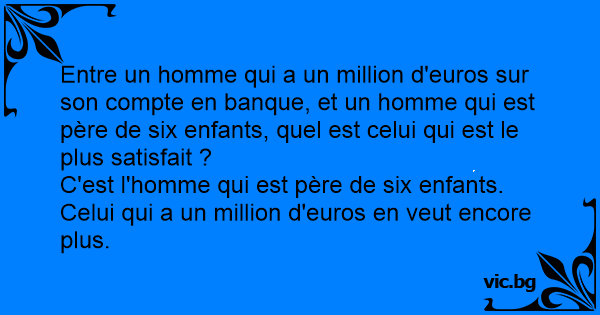Entre un homme qui a un million d'euros sur son compte en banque, et un homme qui est père de six enfants, quel est celui qui est le plus satisfait ?