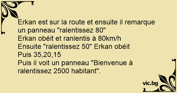 Erkan est sur la route et ensuite il remarque un panneau "ralentissez 80"