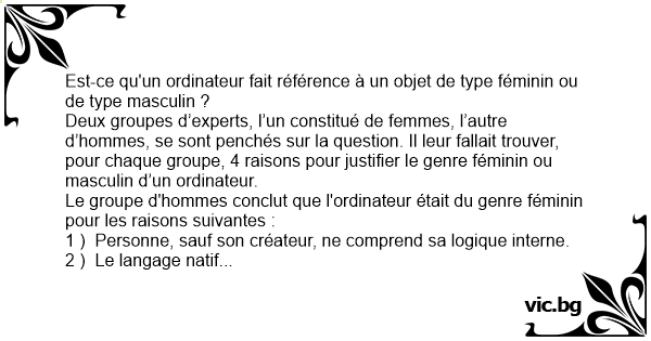 Est-ce qu'un ordinateur fait référence à un objet de type féminin ou de type masculin ?