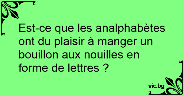 Est-ce que les analphabètes ont du plaisir à manger un bouillon aux nouilles en forme de lettres ?