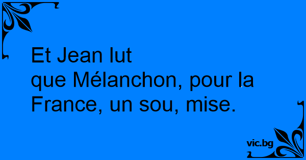 Et Jean lut que Mélanchon, pour la France, un sou, mise.