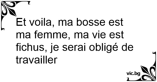 Et voila, ma bosse est ma femme, ma vie est fichus, je serai obligé de travailler