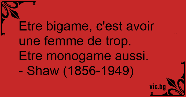 Etre bigame, c'est avoir une femme de trop.