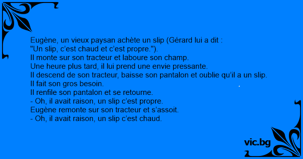 Eugène, un vieux paysan achète un slip (Gérard lui a dit :