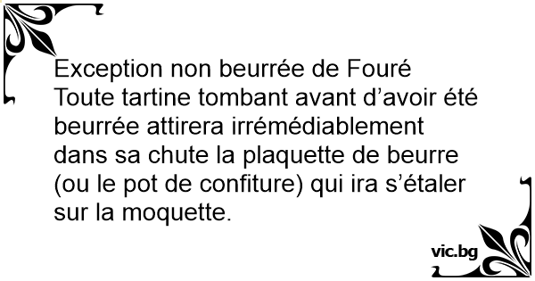 Toute tartine tombant avant d’avoir été beurrée attirera irrémédiablement dans sa chute la plaquette de beurre (ou le рот de confiture) qui ira s’étaler sur la moquette.
