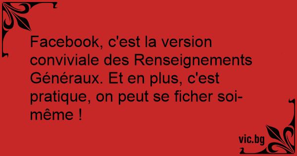 Facebook, c'est la version conviviale des Renseignements Généraux. Et en plus, c'est pratique, on peut se ficher soi-même !