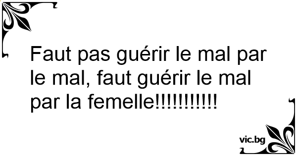Faut pas guérir le mal par le mal, faut guérir le mal par la femelle!!!!!!!!!!!
