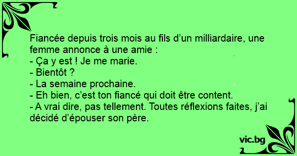 - A vrai dire, pas tellement. Toutes réflexions faites, j’ai décidé d’épouser son père.