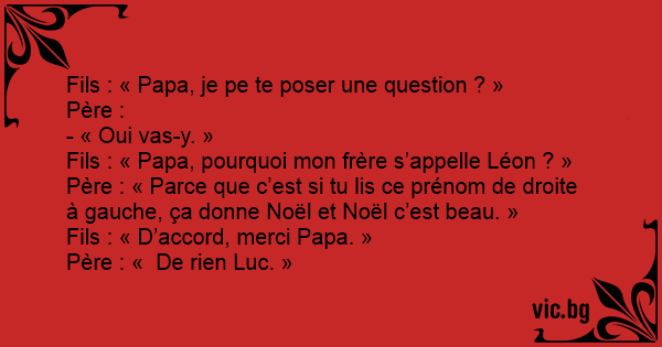 Fils : « Papa, pourquoi mon frère s’appelle Léon ? »