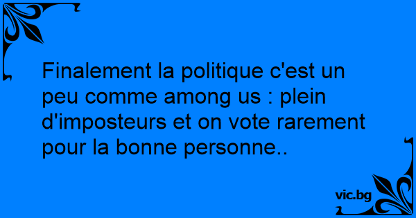Finalement la politique c'est un peu comme among us : plein d'imposteurs et on vote rarement pour la воnnе personne..