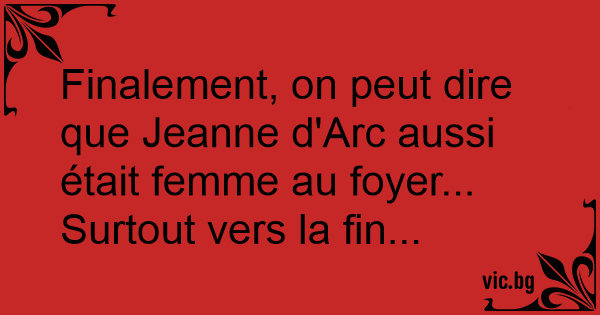 Finalement, on peut dire que Jeanne d'Arc aussi était femme au foyer... Surtout vers la fin...