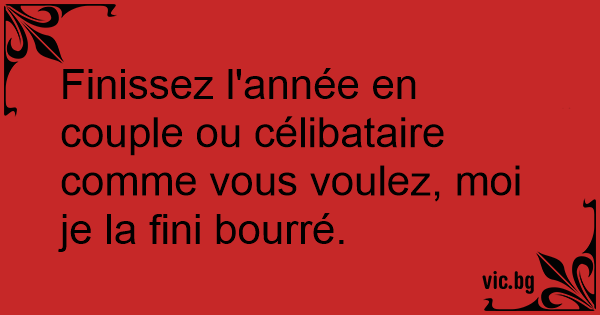 Finissez l'année en couple ou célibataire comme vous voulez, moi je la fini bourré.