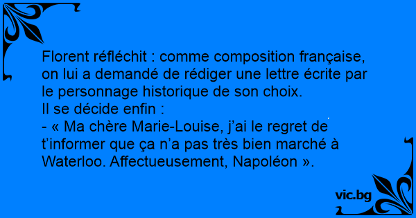 - « Ma chère Marie-Louise, j’ai le regret de t’informer que ça n’a pas très bien marché à Waterloo. Affectueusement, Napoléon ».